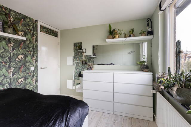Aan de achterzijde bevinden zich eveneens twee slaapkamers. Een van deze kamers wordt momenteel gebruikt als kasten- of kleedkamer, terwijl de andere slaapkamer ruim van formaat is en eveneens geschikt is voor een tweepersoonsbed. Dankzij de praktische indeling zijn alle kamers flexibel in te richten en geschikt voor verschillende woonwensen.