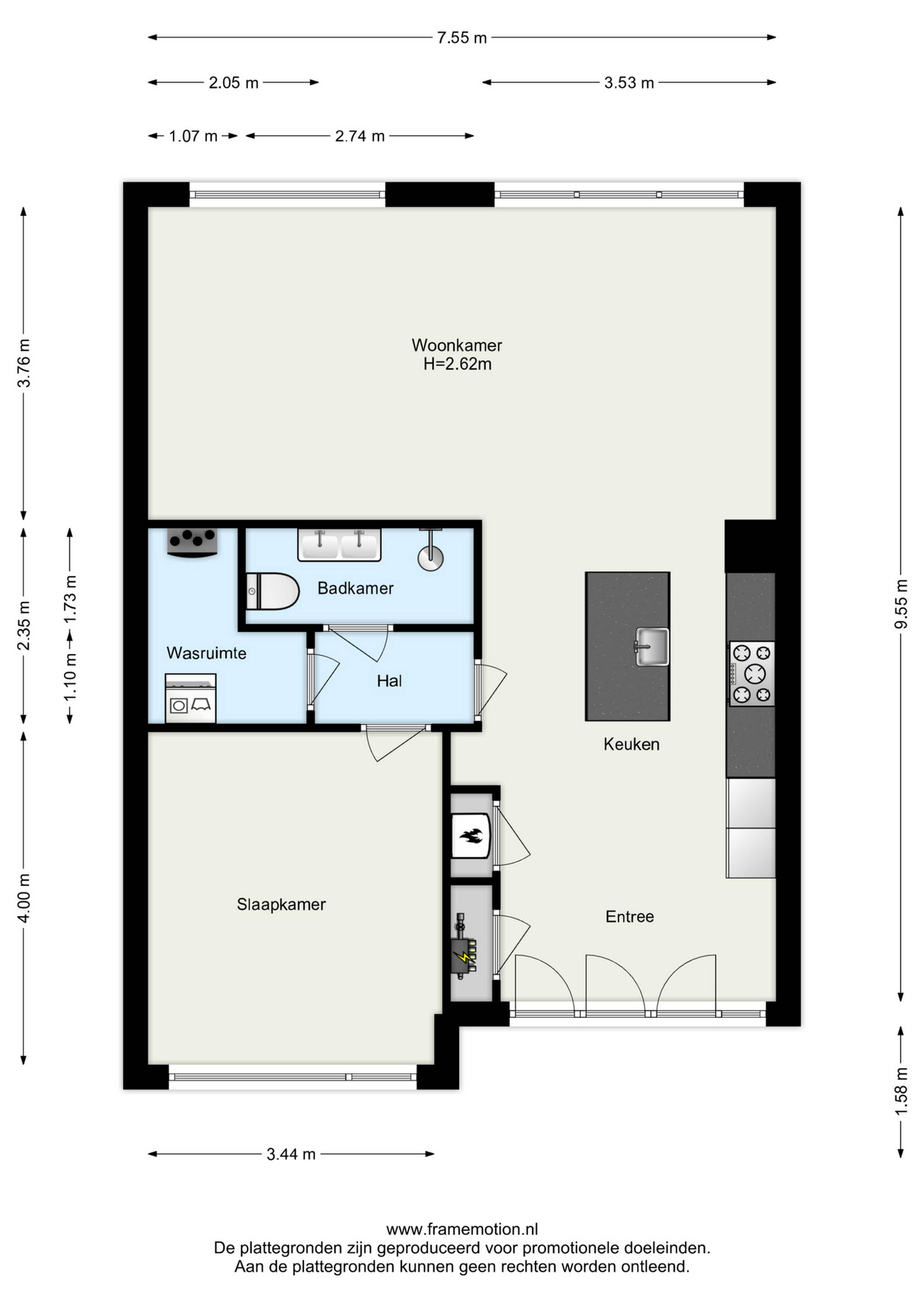 - Indeling momenteel 2 kamers, oorspronkelijk 3 kamers (extra kamer eenvoudig te realiseren)