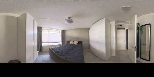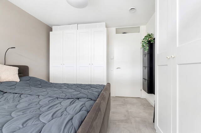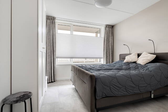 De slaapkamer is ruim van opzet en biedt meer dan voldoende plaats voor een tweepersoonsbed met nachtkastjes. Daarnaast is er ruimte voor twee kledingkasten, terwijl er rondom het bed nog prettig loopruimte overblijft. De kamer voelt daardoor comfortabel en overzichtelijk aan en leent zich uitstekend voor een rustige en fijne slaapomgeving.
