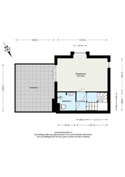 De tweede verdieping verrast u met een zeer ruime slaapkamer die momenteel is ingericht als kinderkamer. Ook hier zijn de wanden en plafonds strak gestuukt en in een sfeervolle kleur geverfd, wat de kamer een fijne uitstraling geeft. Dankzij de openslaande deuren heeft u direct toegang tot het riante dakterras van maar liefst 20 m², gelegen op het zuidwesten. Hier kunt u de hele middag en avond genieten van de zon, een heerlijke plek om te ontspannen of te borrelen.
