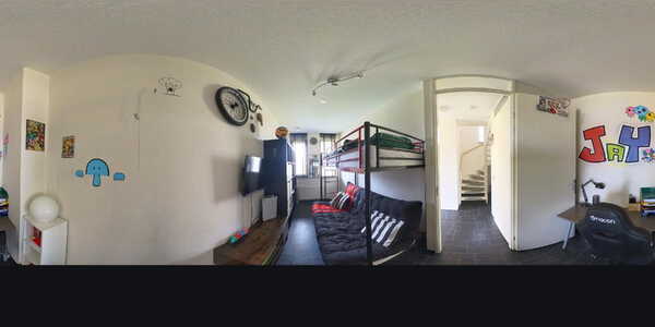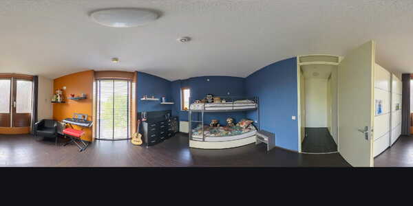 Vanuit de hal bereikt u de eerste slaapkamer. Deze kamer is praktisch ingedeeld en dankzij de rechte wanden goed in te richten met een bed en bureau. Daarmee is het een veelzijdige ruimte die zich uitstekend leent als logeerkamer, werkplek of bijvoorbeeld een speelkamer voor de kinderen. De nette afwerking en het doorlopende laminaat zorgen bovendien voor een rustige uitstraling.