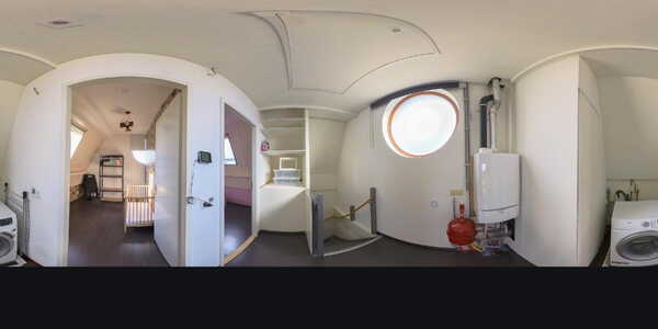Op de overloop vindt u de aansluiting voor de wasmachine, de cv-ketel en een praktische ingebouwde bergruimte met planken, ideaal voor het opbergen van spullen. Via een vlizotrap is bovendien de vliering bereikbaar, waardoor u extra bergruimte tot uw beschikking heeft.