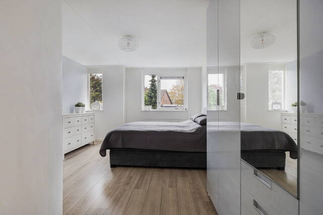 De tweede verdieping biedt nog twee ruime slaapkamers en een praktische wasruimte. Deze ruimtes worden gekenmerkt door de hoge nok en voldoende licht en ruimte door de brede kunststof dakkapel.