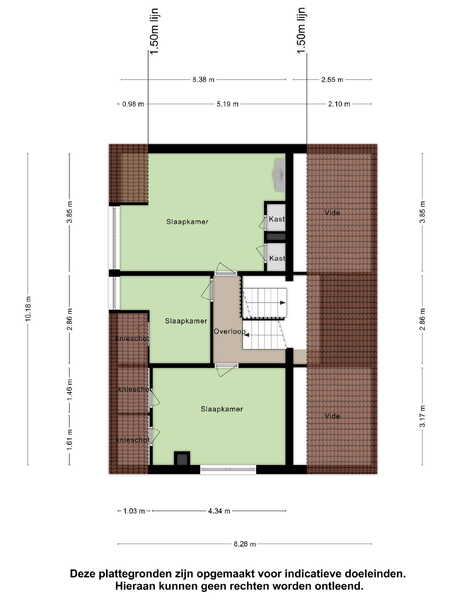 Overloop naar drie slaapkamers, elk voorzien van eigen wastafel.