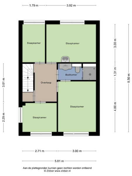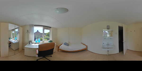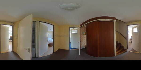 Terug in de woonkamer lopen we in het midden via de open trap naar de eerste verdieping. Daar treffen we vier slaapkamers, ideaal voor een groot gezin of werkplekken aan huis. De kamers zijn respectievelijk 12, 12, 6 en 5 m2. Fijne lichte kamers waarbij 1 van de kamers aan de voorzijde ook over een zijraam beschikt.