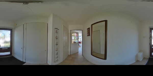 Via de voortuin loop je naar de voordeur waarachter je binnenkomt in de ruime hal met de meterkast, een bergkast met de verdeler van de vloerverwarming, het toilet en er is ruimte voor de jassen.