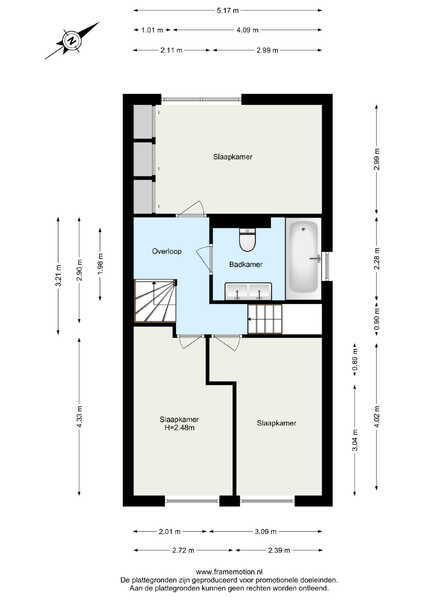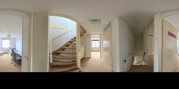 Overloop met toegang tot drie slaapkamers en de badkamer.