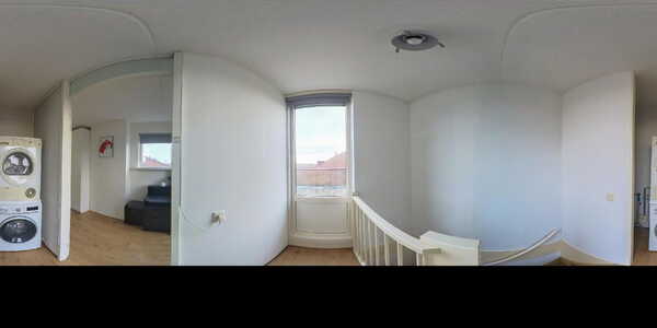 Overloop met aansluitingen voor wasmachine en droger en de opstelling van CV/MV.
