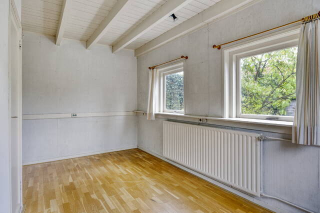 Slaapkamer 2 (ca. 12 m2) is gelegen aan de achterzijde van de woning en is voorzien van parketvloer en een vaste kast. Door de 3 ramen biedt deze kamer een aangenaam natuurlijke lichtinval.