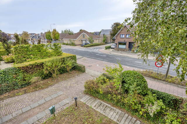 Royale voortuin met sierstruiken en bomen. Op eigen terrein is parkeergelegenheid voor minimaal 3 auto’s.