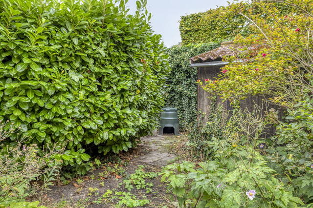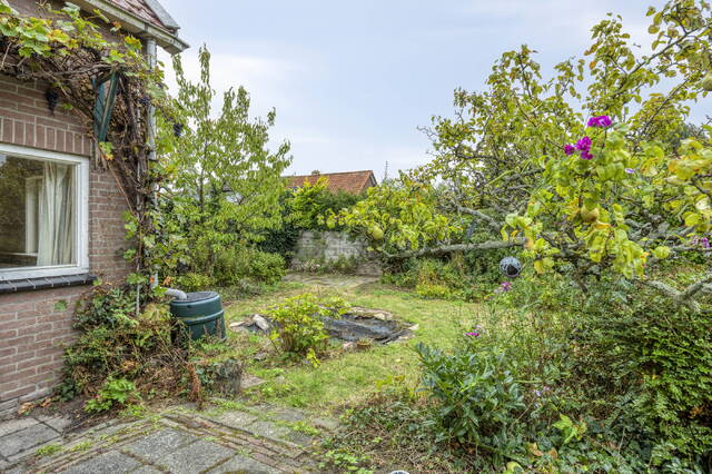 De royale, fraai aangelegde achtertuin heeft sierstruiken, een vijver en meerdere fruitbomen (appel, peer en druif), waardoor u het hele jaar door kunt genieten van een groene oase rondom het huis. De achtertuin beschikt verder over sierbestrating, buitenkraan en een houten berging.