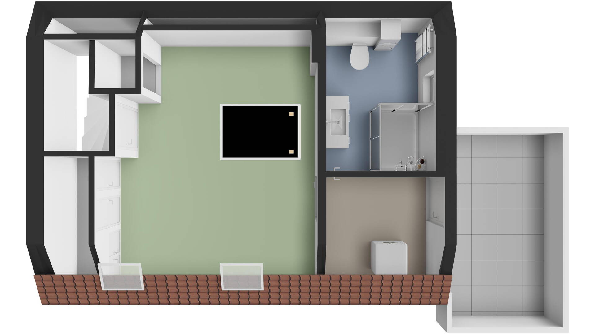 Vanuit de wasruimte heb je toegang tot zowel de badkamer als het dakterras.