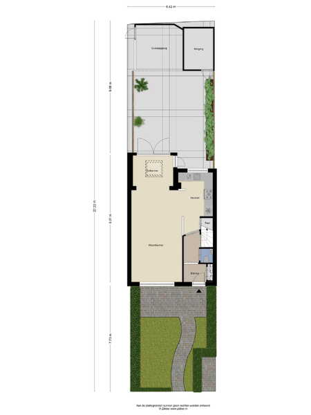 De tuin van ruim 64 m2 ligt op het zonnige zuiden en is erg mooi aangelegd. Er liggen grote tegels en er is een brede border met beplanting en twee boompjes die in de zomer vol in bloei staan en je wat extra privacy geven. Er is ruimte voor een grote loungehoek en aan de stenen berging is een mooie houten overkapping gebouwd waar je het hele jaar door kunt genieten van het buitenleven. Er is een achterom om de fietsen in de berging te stallen.