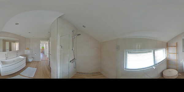Op de eerste verdieping treffen we drie slaapkamers, allen voorzien van laminaatvloeren en glad gestucte wanden en plafonds. De hoofdslaapkamer aan de achterzijde is voorzien van airconditioning. In een van de kamers is een opstelling voor de wasmachine en droger gemaakt. De badkamer is vergroot door het voormalige balkon erbij te betrekken en is luxe afgewerkt met een grote inloopdouche, een mooi dubbel wastafelmeubel met twee mengkranen en twee grote laden, een verlichte spiegel en het tweede toilet. Ook hier is de verlichting mooi in het plafond verwerkt. Je hangt de handdoeken te drogen aan de designradiator.