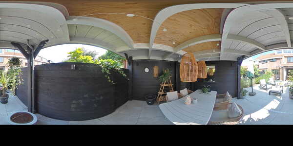 – Zonnige achtertuin op het zuiden met houten overkapping (2016)