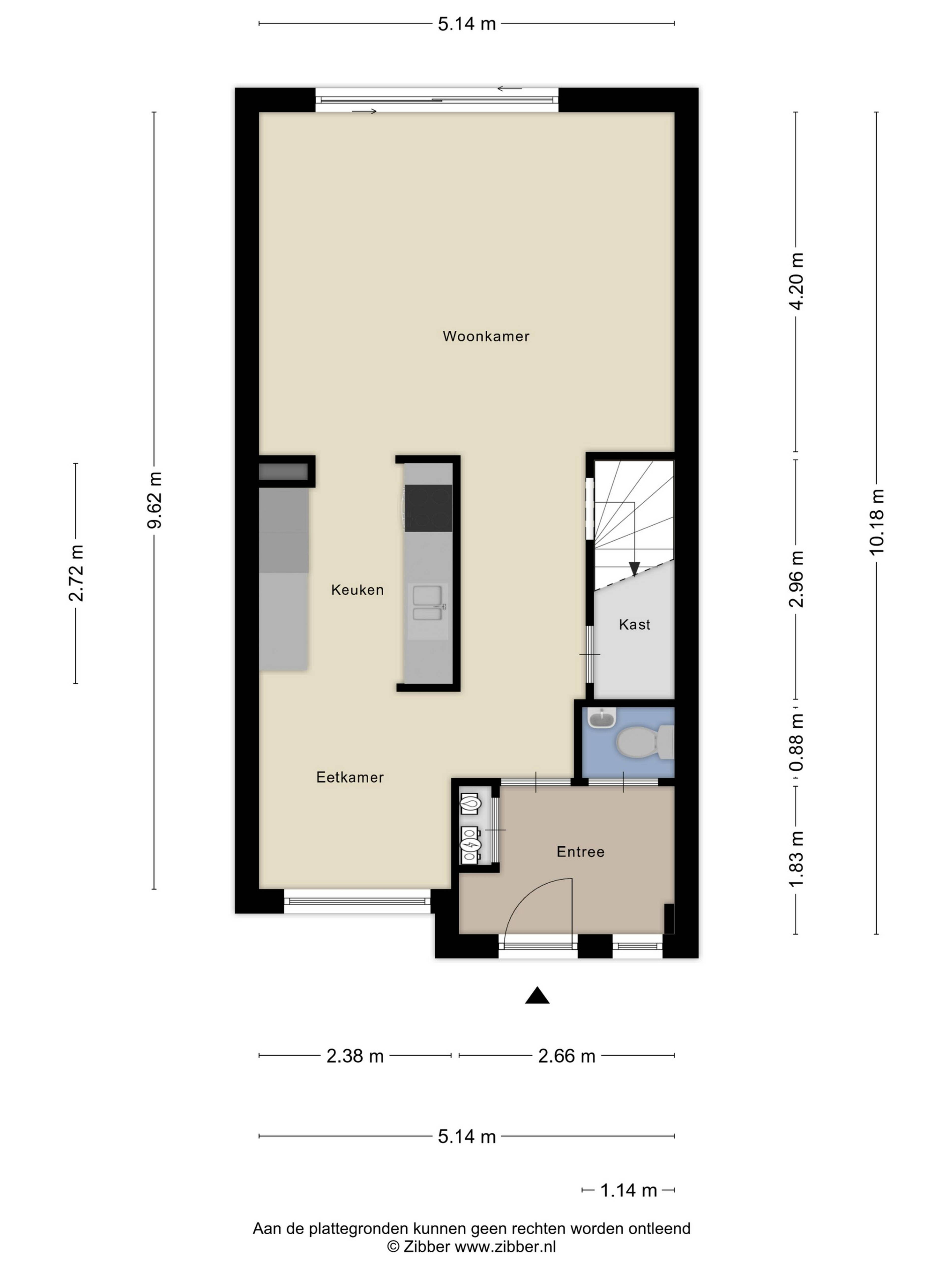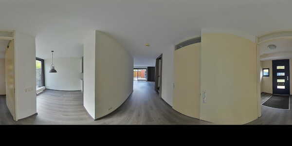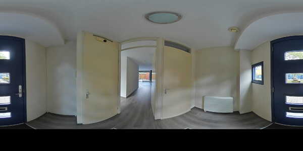 Entree, hal met meterkast, toiletruimte voorzien van een duoblok en fonteintje. De toiletruimte is geheel betegeld in een lichte kleurstelling. Toegang tot het woongedeelte.