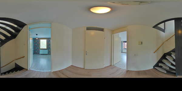 Ruime overloop met toegang tot alle vertrekken en trap naar de 2e verdieping.
