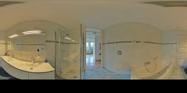 Vanuit de woonkamer lopen we terug naar de hal richting de twee slaapkamers van respectievelijk 18 en 15 m². Beide kamers zijn ruim en voorzien van een grote inbouwkast. Vanuit de hal is ook de badkamer bereikbaar. Deze is heerlijk ruim en beschikt over zowel een bad als een douche, een groot wastafelmeubel met dubbele wasbak en mengkranen, met daarboven een spiegel met ingebouwde verlichting. Handdoeken kunnen worden gedroogd aan de designradiator en daarnaast is er een urinoir aanwezig.
