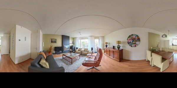 Via de entree met meterkast en nette toiletruimte met fonteintje komt u in de lichte woonkamer (ca. 34 m²). Deze is afgewerkt met een laminaatvloer, behangwanden en voorzien van een airco-installatie. Vanuit de woonkamer heeft u een fraai zicht op de tuin en toegang tot de aangebouwde aluminium serre. Deze serre strekt zich uit over de volle breedte van de woning en is voorzien van verwarming, verlichting en zonwering. Dankzij de grote glaspartijen geniet u hier het hele jaar door van een fijne, lichte leefruimte.