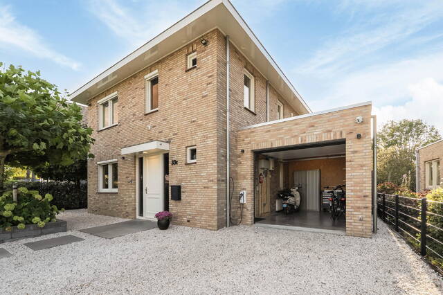 Fraai aangelegde voortuin met parkeergelegenheid voor drie auto's op eigen oprit. Tevens is de voortuin voorzien van een wandlader voor elektrische auto's, een handige buitenkraan, sfeerverlichting en stopcontacten. Via een openslaande poort heeft u toegang tot de achtertuin.