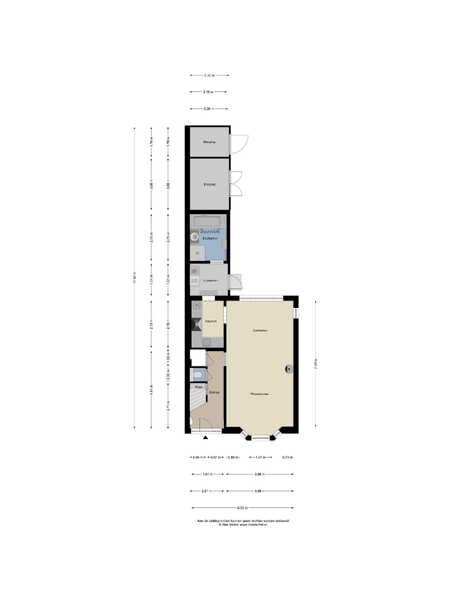 Bijkeuken (ca. 4 m2) met de wasmachine- en drogeraansluiting. De twee dakramen bieden voldoende natuurlijke lichtinval. De bijkeuken is verder voorzien van tegelvloer en wandtegels. De badkamer is via een schuifdeur bereikbaar. Via de bijkeuken heeft u toegang tot de achtertuin.