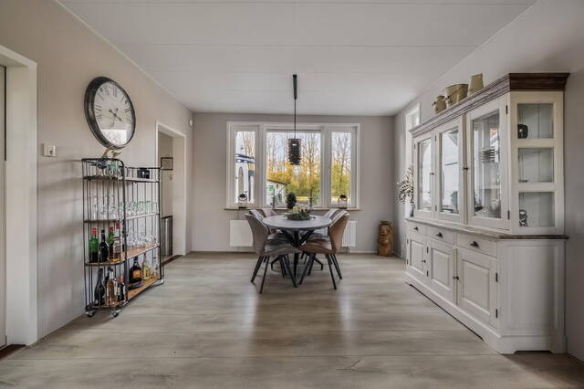 - Doorzon woonkamer met een sfeervolle houtkachel en een erker aan de voorkant;