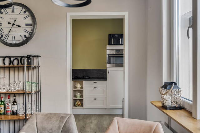 Sfeervolle lichte doorzon woonkamer (ca. 30 m2) voorzien van laminaatvloer en een sfeervolle houtkachel. De erker creëert niet alleen extra ruimte, maar ook een fijne plek met aangename natuurlijke lichtinval en uitzicht op de rustige straat. Dankzij de royale afmetingen van de woonkamer is er plek voor zowel een zit- als eetgedeelte. Via de woonkamer heeft u toegang tot de keuken.