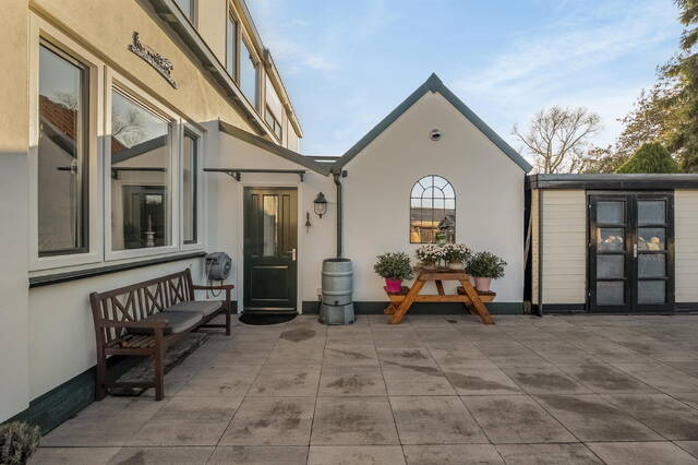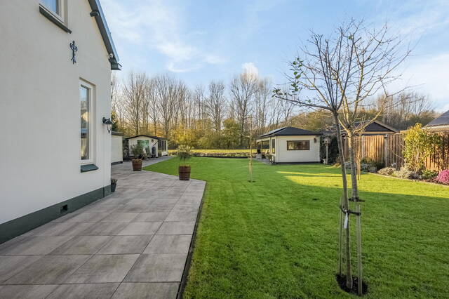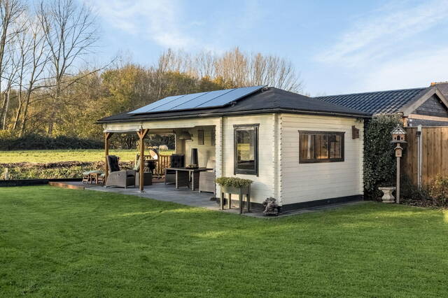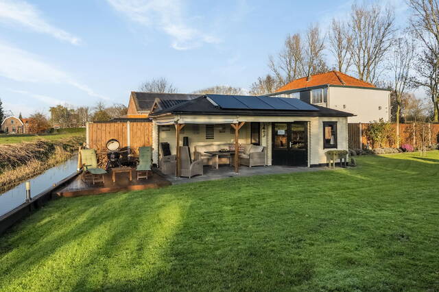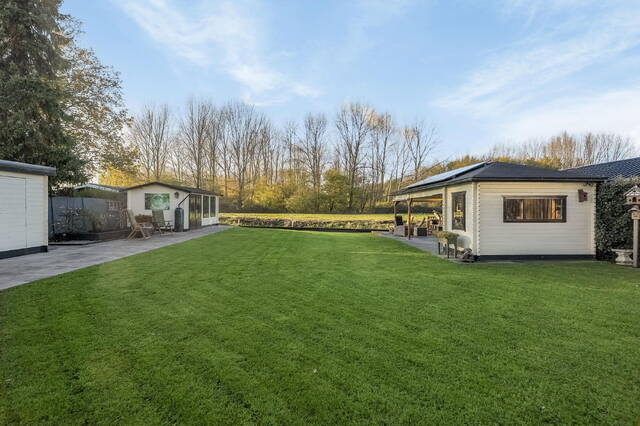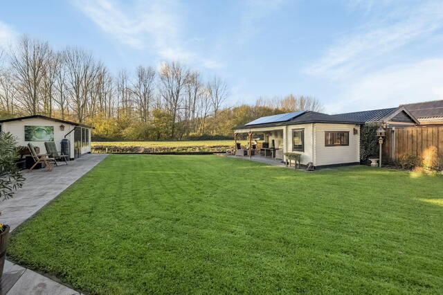 De royale tuin is gelegen op het noordwesten en is fraai aangelegd met terrassen en sierbeplanting. Verder is de tuin voorzien van grasveld, twee bergingen met elektra, een houten schuur en een tuinhuisje met overkapping en een gezellig terras.