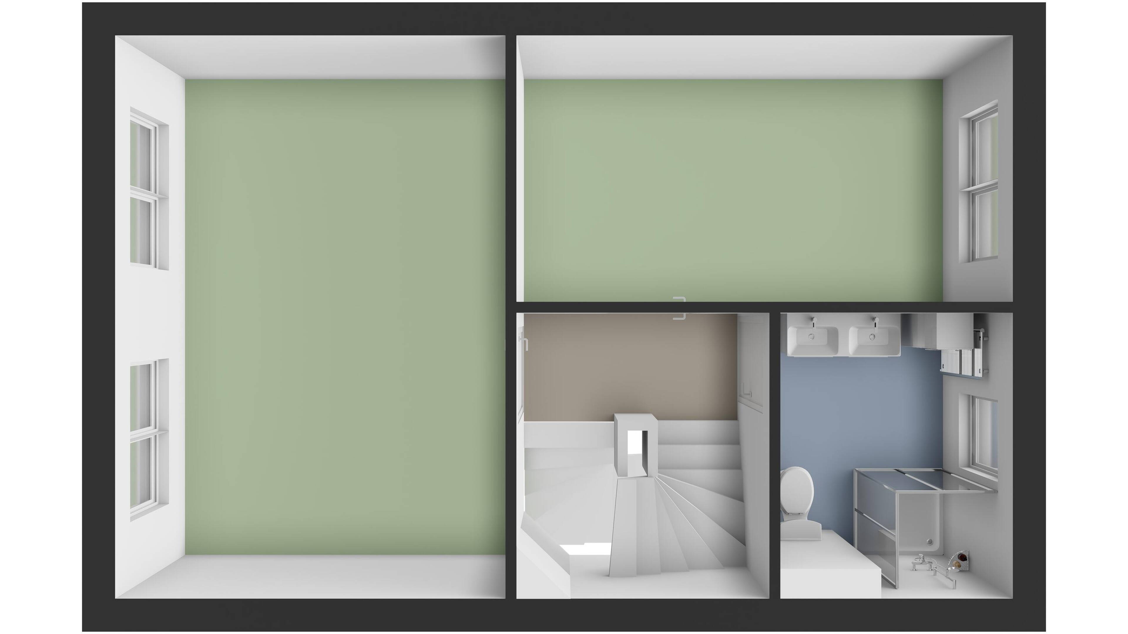 Vanaf de overloop heeft u toegang tot twee slaapkamers en de badkamer.