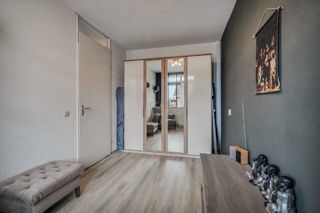 Slaapkamer 2 (voorzijde) is eveneens voorzien van een nette laminaatvloer.