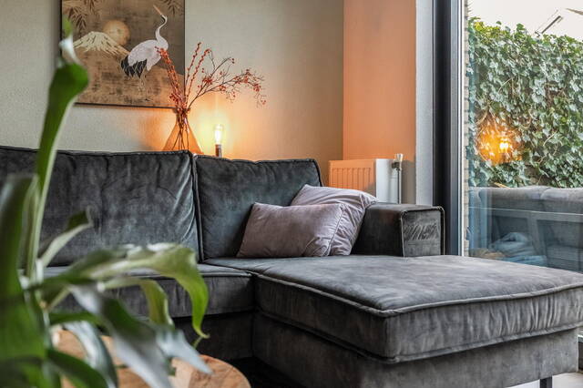 - Lichte tuingerichte woonkamer met openslaande deuren