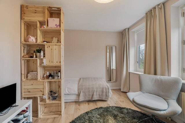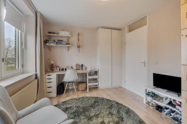 Beide slaapkamers zijn gelegen aan de zijkant van het complex en beschikken over grote raampartijen, wat zorgt voor veel daglicht. De kamers zijn afgewerkt met een laminaatvloer en bieden voldoende ruimte voor een slaapkamer, werkkamer of logeerkamer.