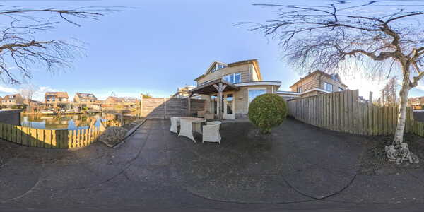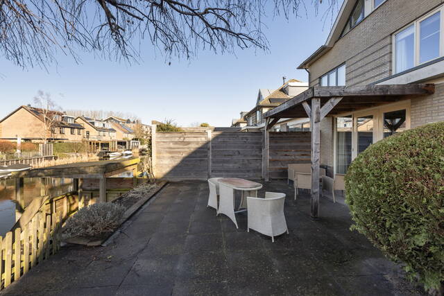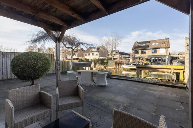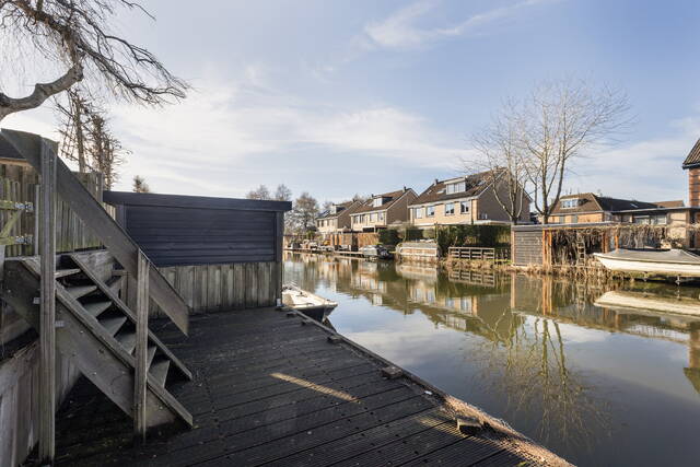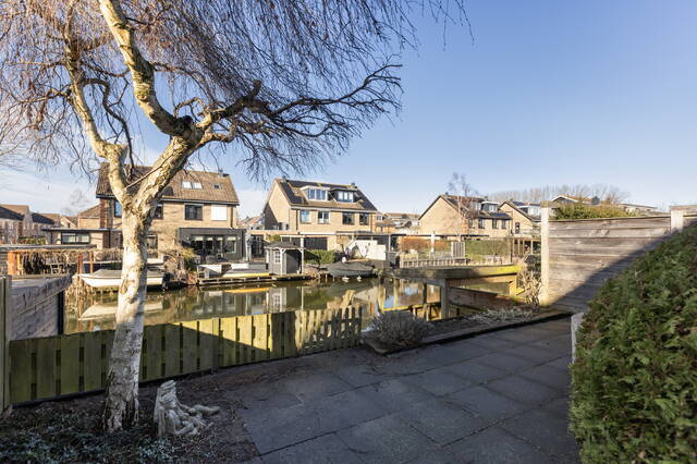 Via de woonkamer bereikt u de achtertuin, gelegen op het noordwesten. Hier geniet u in de middag en avond van de zon, met uitzicht over het water. Direct aan de woning bevindt zich een overkapping, waardoor u ook op minder zonnige dagen comfortabel buiten kunt zitten. De tuin loopt door tot aan de vlonder aan het water, een heerlijke plek om te ontspannen, een bootje aan te leggen of simpelweg te genieten van het uitzicht.
