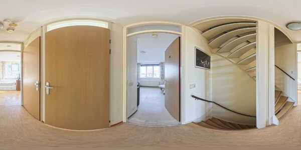 Via de vaste trap bereikt u de tweede verdieping. Ook hier valt direct de prettige lichtinval op en de verrassende ruimte die deze etage biedt.