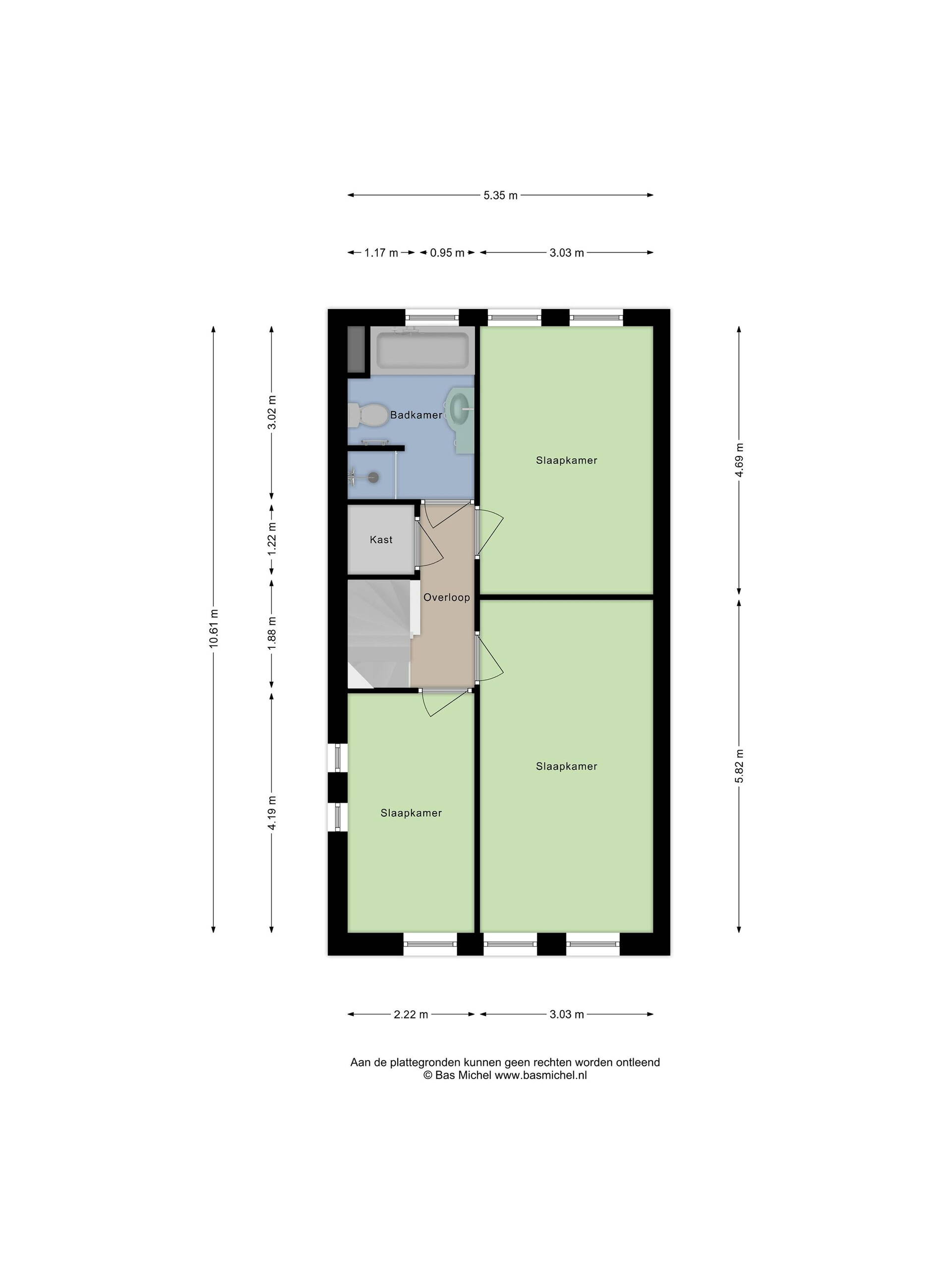 De slaapkamers op deze verdieping zijn afgewerkt met een duurzame laminaatvloer en de wanden zijn glad gestuct.