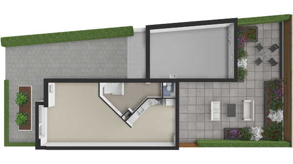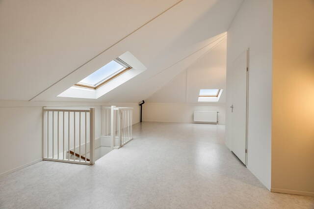 Royale zolderverdieping met aparte technische-/wasruimte en twee grote Velux dakramen met verduisterend gordijn. Dankzij de reeds geplaatste grote dakramen biedt deze verdieping bovendien uitstekende mogelijkheden voor het realiseren van extra kamers. De zolder is verder verwarmd en afgewerkt met vinylvloer.