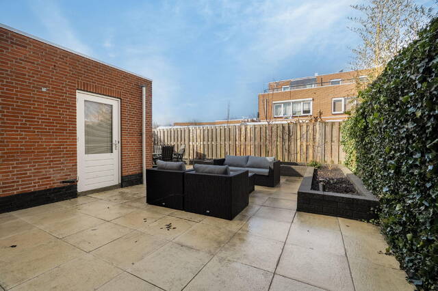 De achtertuin is gelegen op het noordwesten en is onderhoudsvriendelijk aangelegd. De tuin beschikt over bestrating, beplanting en een buitenkraan.