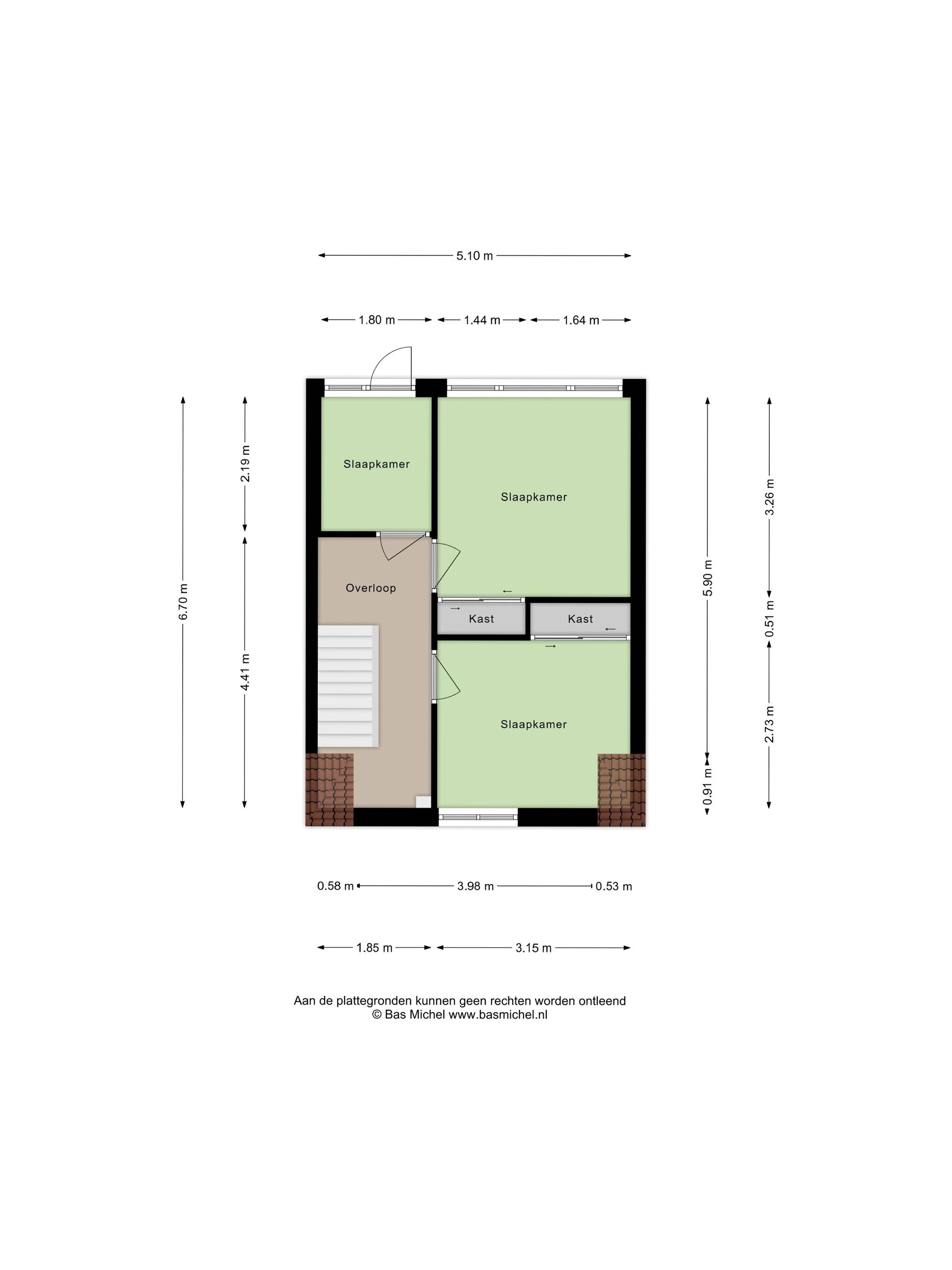 De eerste verdieping biedt drie slaapkamers van circa 9 m², 10 m² en 4 m².