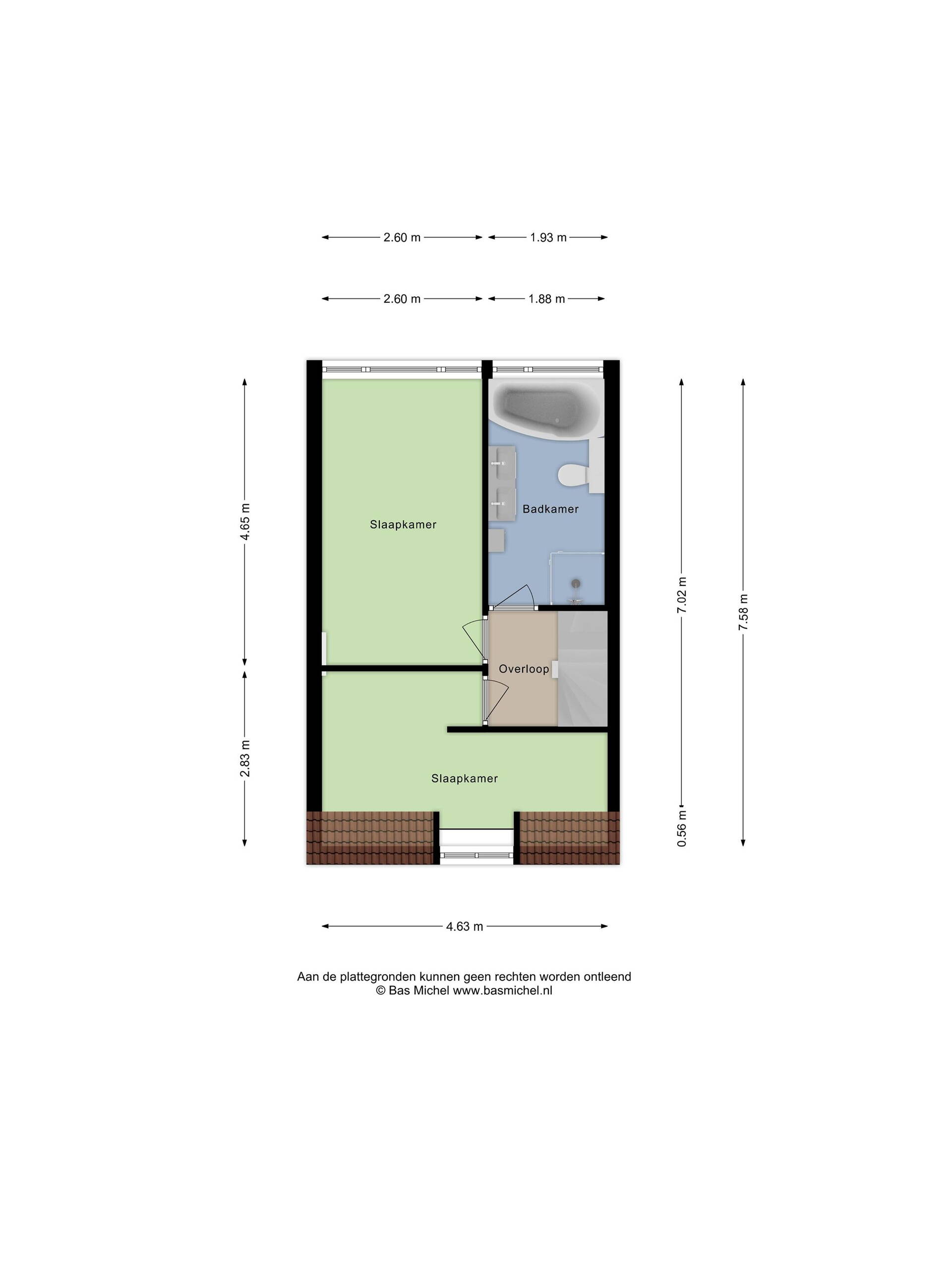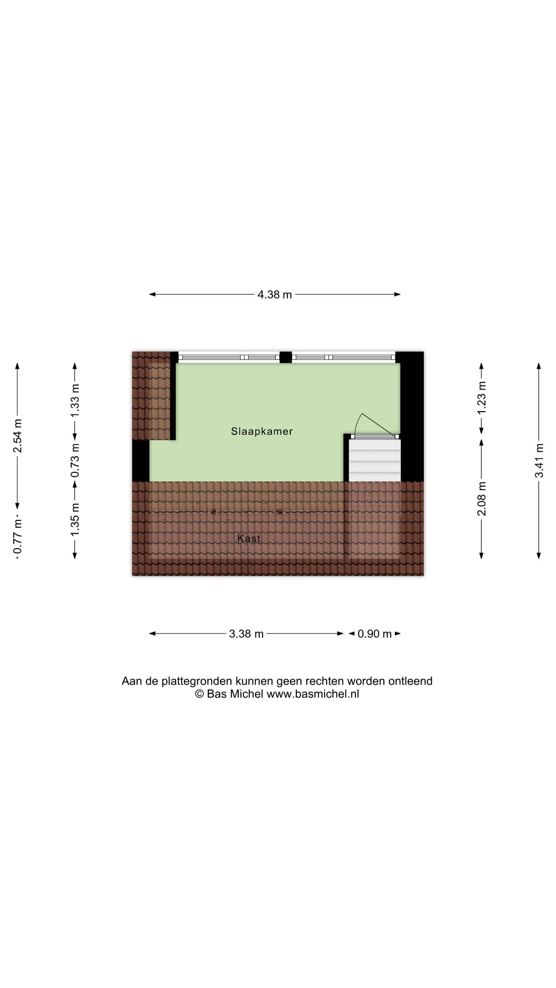 In het woonoppervlakte is de zolderverdieping niet meegenomen