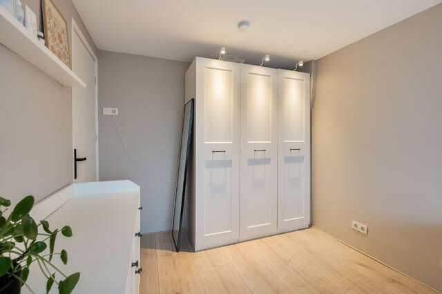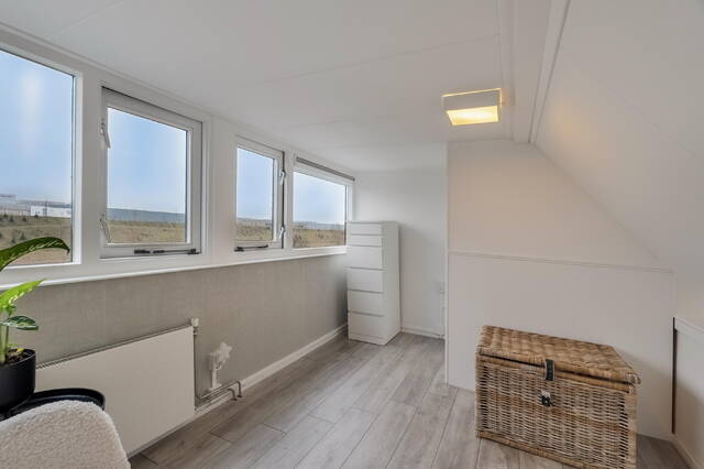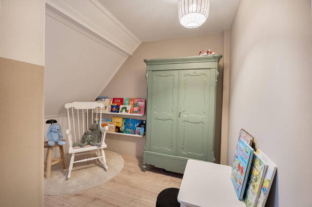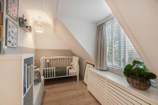De zolderkamer vormt een extra woonlaag, deze is niet meegenomen in de metrage van het woonoppervlakte. Met een dakkapel aan de achterzijde, knieschotten met bergruimte en een laminaatvloer is dit een ideale ruimte als thuiswerkplek, (hobby)kamer. Ook hier zijn de houten kozijnen voorzien van dubbele beglazing.