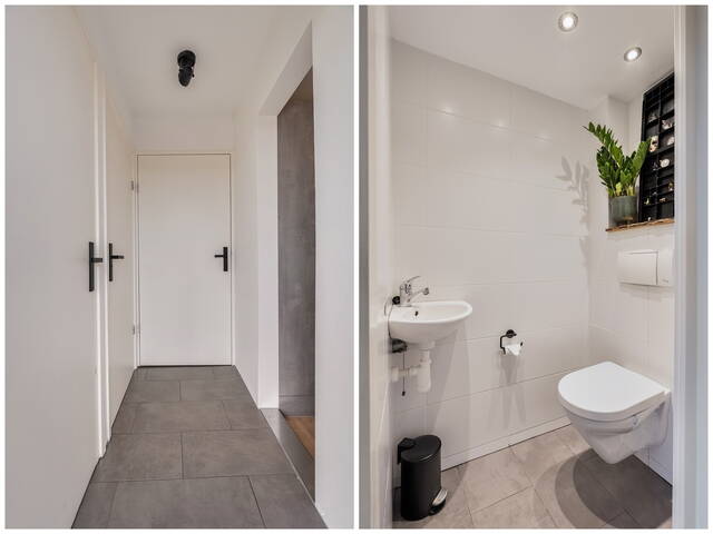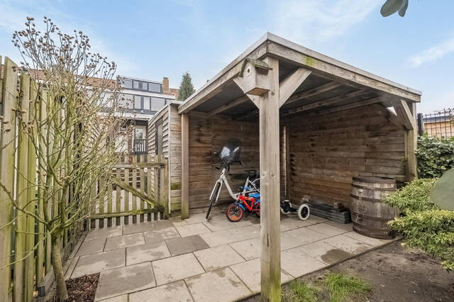 Aansluitend vind je de achterhal met ruimte voor wasmachine en droger, het toilet en de opstelling van de Vaillant CV-combiketel (2020). Via de achterdeur loop je zo de veranda met overkapping op, waar je beschut kunt zitten. Onder de overkapping is bovendien extra bergruimte aanwezig.