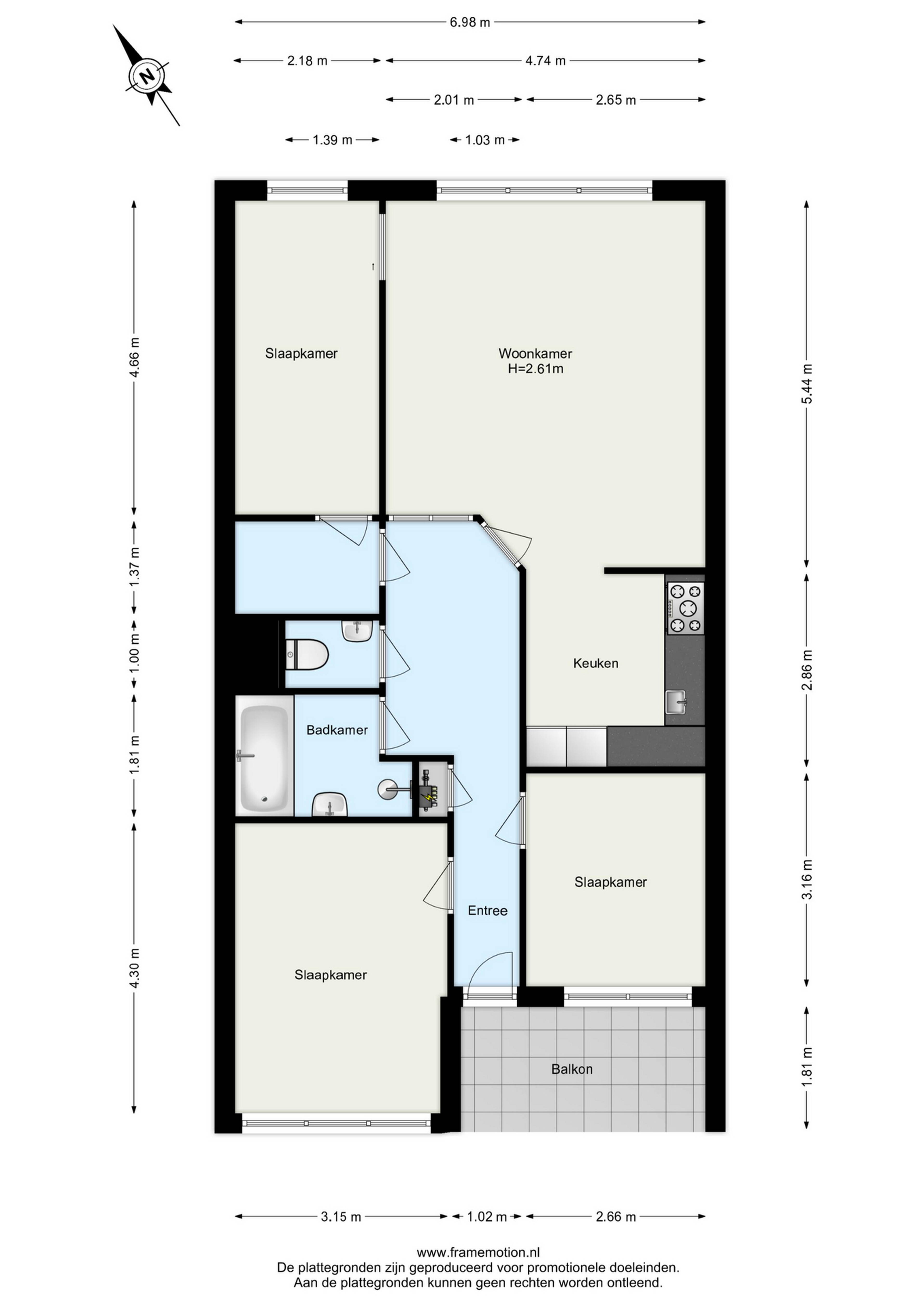 Het appartement beschikt tevens over een separaat toilet met duoblok en fonteintje. Aan de galerijzijde heb je in de nis voor de deur een eigen buitenruimte, waar je een zitje kunt plaatsen om van buiten te kunnen genieten.