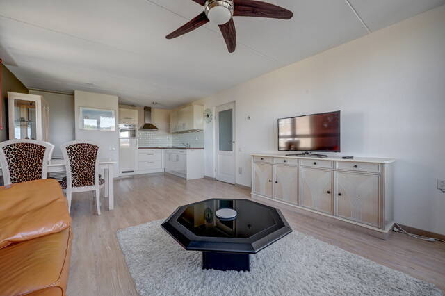 De woonkamer biedt ruimte voor een grote zithoek waar je heerlijk kunt ontspannen. Daarnaast is er voldoende plek voor een royale eethoek waar je met gemak een tafel voor 6 tot 8 personen kwijt kunt.