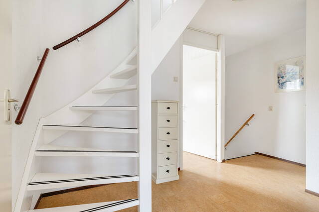 De overloop biedt toegang tot drie slaapkamers, de badkamer en een apart toilet.
