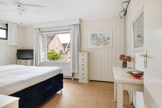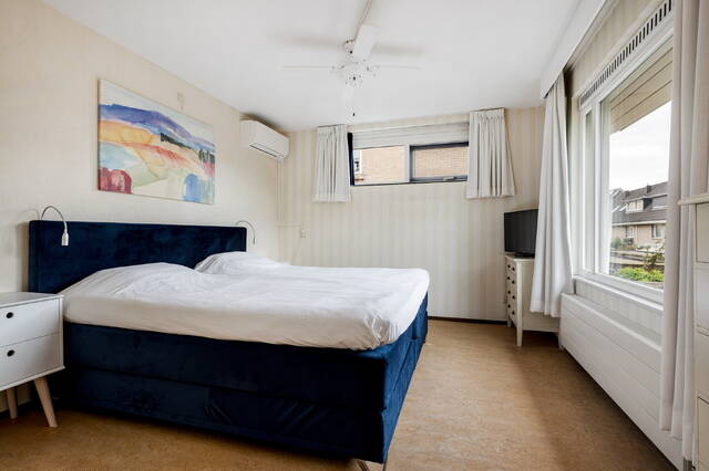 Slaapkamer 1 (ca. 16 m²), gelegen aan de achterzijde, beschikt over een vaste inbouwkast en airco.