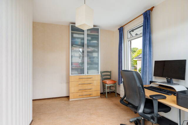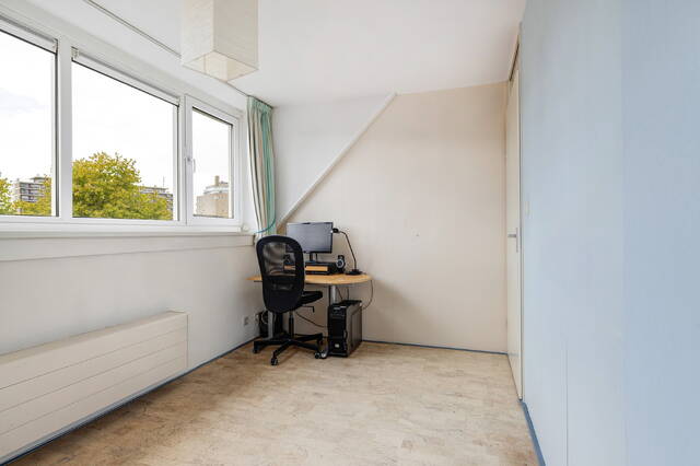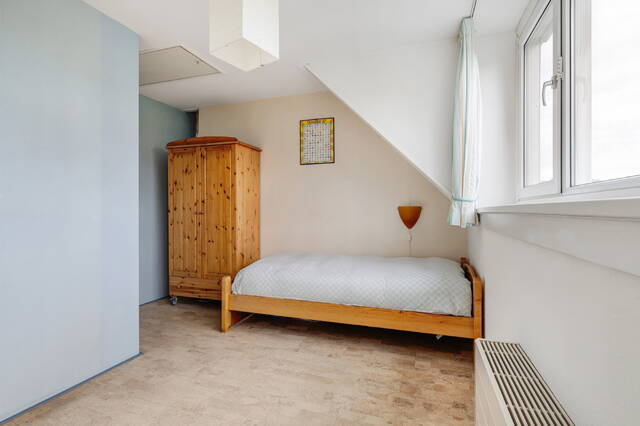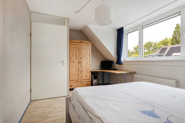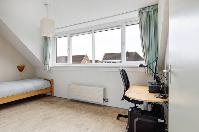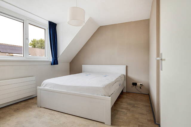 Slaapkamer 4 (ca. 15 m²) aan de achterzijde, met kunststof dakkapel, elektrisch screen en toegang tot de vliering.