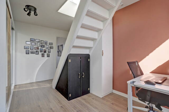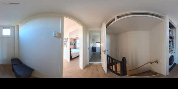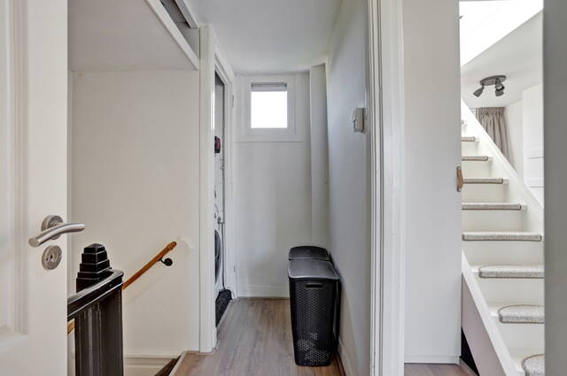 De overloop biedt toegang tot twee slaapkamers en de badkamer. Ook vindt u hier de kast met CV-opstelling en wasmachineaansluiting.