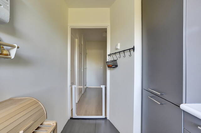 Je betreedt het keurig onderhouden complex via de afgesloten, centrale entree. De ruime hal met brievenbussen en bellentableau ademt direct een verzorgde sfeer uit. Je neemt één van de twee liften naar de zesde verdieping, waar dit fijne appartement op je wacht.