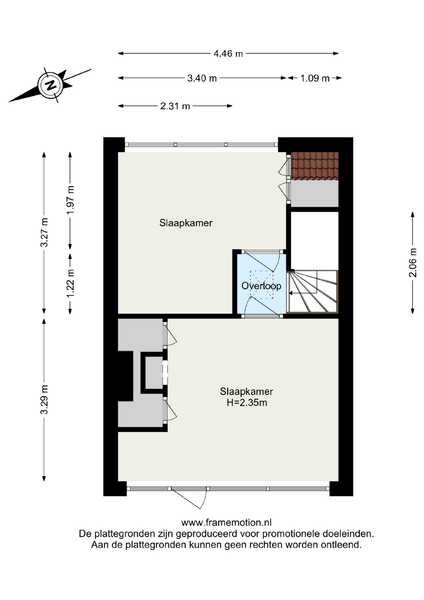 De overloop biedt toegang tot twee slaapkamers en de bergvliering.