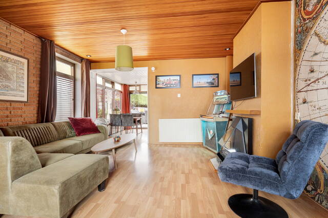 Via de entree komt u binnen in de hal met trapopgang naar de eerste verdieping. De gezellige woonkamer (ca. 26 m²) heeft een warme uitstraling dankzij de laminaatvloer en de sfeervolle gashaard. De grote ramen zorgen voor veel lichtinval en bieden een prettig uitzicht op de omgeving.